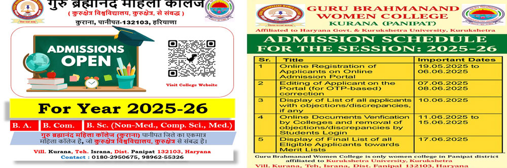 Guru Brahmanand Women College is a premier institution for woman’s higher education in Kurana. The college gained the status of a degree college and got affiliated to KUK University.